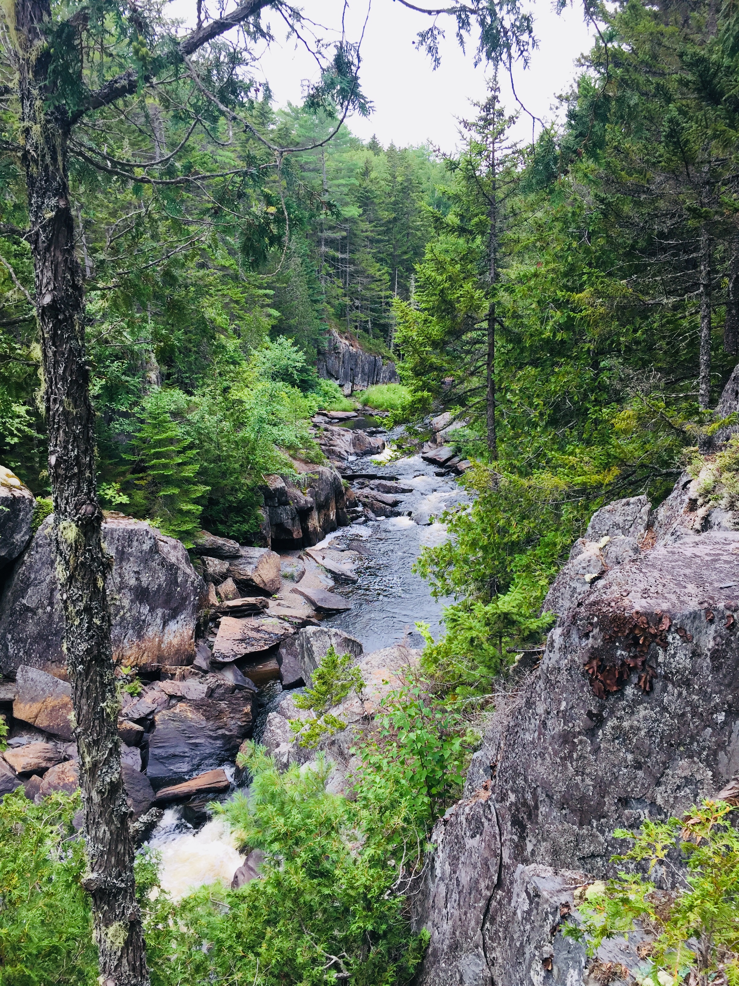 We took the Rim Trail along the water and then returned along the Pleasant River Tote Trail. See map here. In total, with all the small side trails to viewpoints, it is about 9 miles and there is an option to make a smaller loop, if you take the Appalachian Trail cutoff. Alternately, Gulf Hagas can be reached from a parking area for the Head of the Gulf Trail (opposite end from the AT), closer to the Greenville Road.