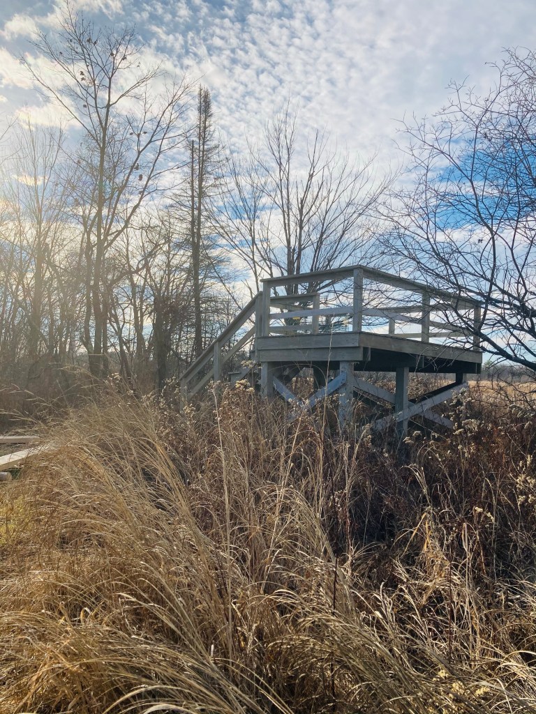On a sunny late fall day, we combined the Access Trail and Lucy R. Sprague Memorial Trail for about 1.6 miles of hiking that took us about half an hour. The sunny, open woods made wildlife viewing easy, and we saw a large pileated woodpecker almost immediately. Trails are flat and well-marked, with signs at many intersections, and another kiosk and map are located at the intersection between the Access Trail and the Sprague Memorial Trail.