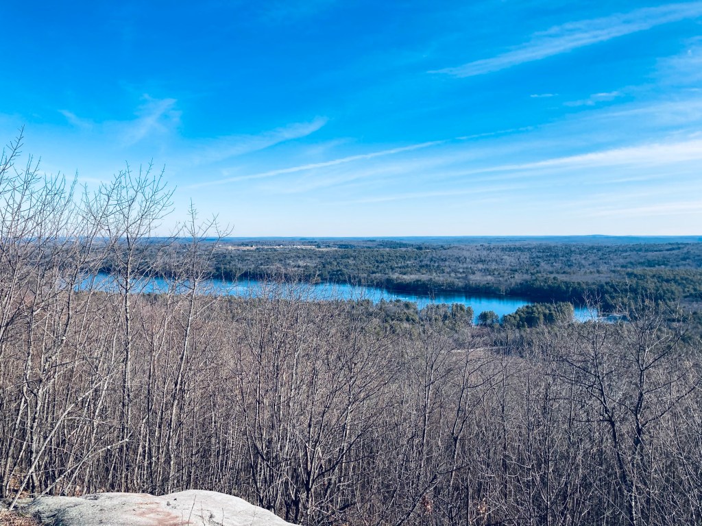 The top of Black Cat houses a cell tower and associated non-scenic structures, but if you turn right and walk up the trail through the woods, an overlook is available, facing to the east and Range Ponds. A prominent wooden sign marks this open area as “Beer Hill,” given this designation by a snowmobile club. With the easy downhill on the way back, this hike can be completed in less than an hour without too much effort.