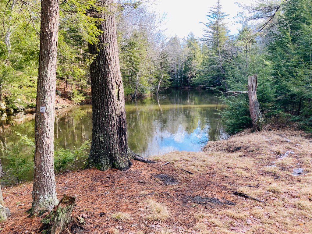 The Cathance River Trails are a surprising green space, with a wild river ravine, in Topsham tucked next to the Highland Green development, within the sound of I-295. These are part of the Cathance River Nature Preserve, a 235 acre preserve composed of private land held in a conservation easement by the Brunswick-Topsham Land Trust. Closed due to COVID-19 restrictions for much of 2020, they are now partially re-opened, as of April 2021. Up-to-date information regarding the best places to park and map with trail closures can be found on the Cathance River Education Alliance webpage. The trails described in this post are mostly open. Dogs are not permitted in Cathance River Nature Preserve.