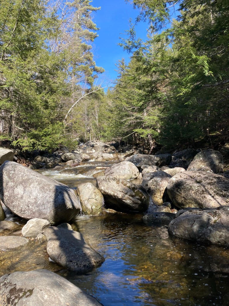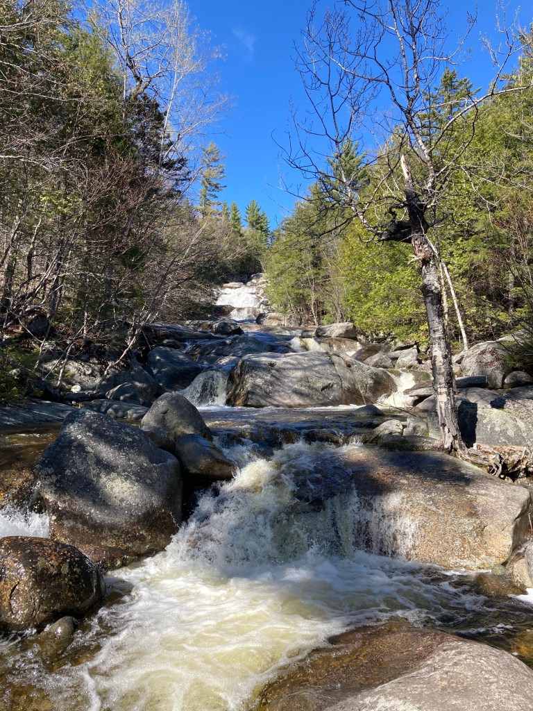 Step Falls Preserve is a twenty-four acre parcel hugging the banks of Wight Brook in Newry, Maine. We visited at the beginning of May, during a road trip to see waterfalls during the spring melt. In the summer months, the shallow pools and falls are refreshing places to cool off with a dip, wade, or swim. Parking is available in a lot off Bear River Road/Route 26. The 3/4 mile trail to the top of the falls is fairly easy, with some roots and steep spots towards the end. Due to the popularity of this spot, it often fills up quickly on weekends and nice summer days.
