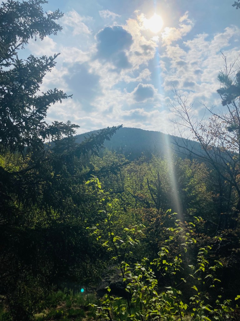 My total hike was about 7.7 miles, exploring every spur trail, and taking a break at the summit, for a little under five hours round-trip. I didn’t see other hikers until my return trip, past the Woodsum Spur intersection, when groups of 2 to 6 hikers began filtering up the mountain. Dogs are allowed, but must be leashed. For refreshments after the hike, the town of Bethel is close, and Le Mu Eats is great. For to-go bakery items, a self-serve, honor pay cart/kiosk is close to the mountain, at Puzzle Mountain Bakery.