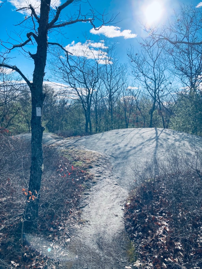 The Bobcat Ridge Trail leads past well-named points like “Lichen Ledge”, which likely serve as rallying points for mountain bikers (the trails are, in fact, marked with ski symbols for difficulty). As a hiker, I didn’t have any issues with the bikers – they were universally audible and courteous. The Trolley Trail was a bit flooded, and a kitschy Christmas tree sat in front of a bench at one point of the trail, but this, along with the drone of a single-engine plane and the blast of a foghorn, was one of the few signs of civilization on the forested trail, located in an otherwise populous area of southeastern Maine. I finished the hike refreshed, returning to a full parking lot.