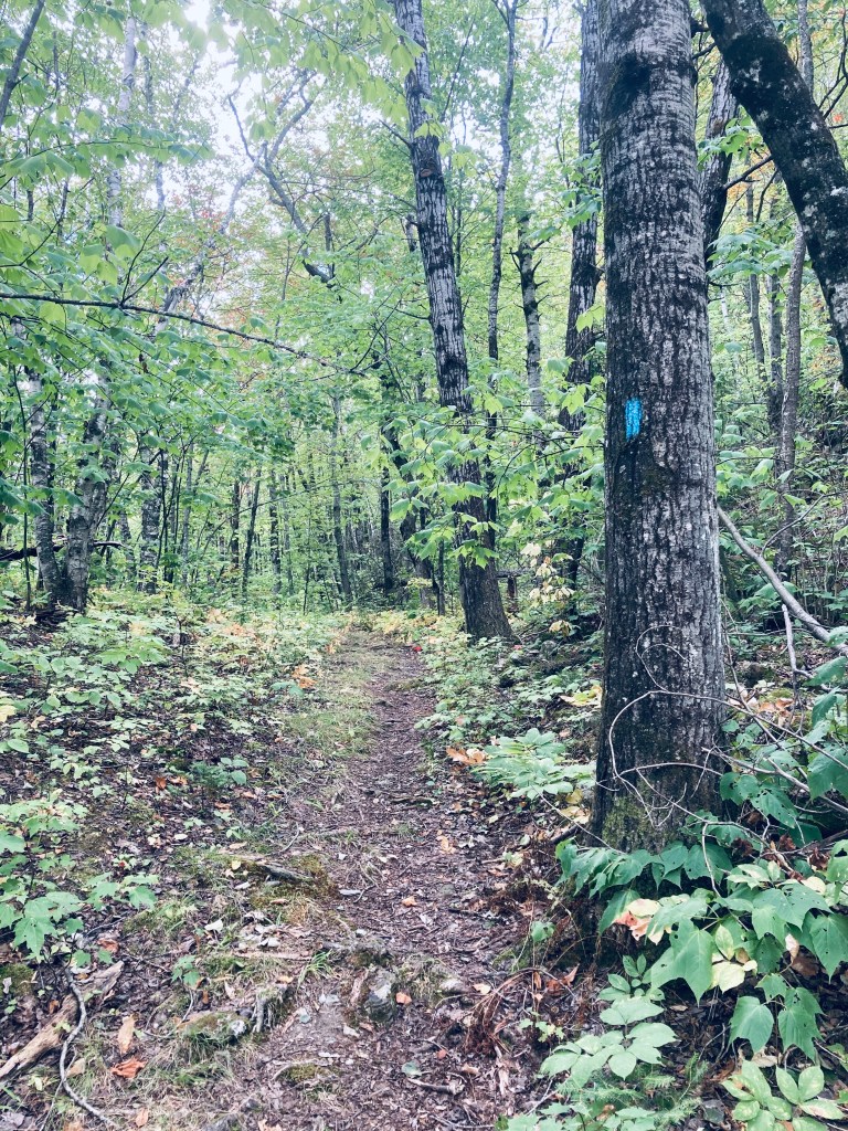 The sparsely recorded trail log and spiderwebs across the trail attest to its lesser-used nature. In fact, as I was getting ready to hike it the first time in September 2020 at the tiny parking area, a man stopped his vehicle and told me that he had hiked every mountain in Baxter State Park except Horse Mountain. I don’t know why he stopped to tell me this, but it provided the proper motivation for me to do something that he had not. In September 2024, I hiked it in a steady rain, and did not see any other hikers.