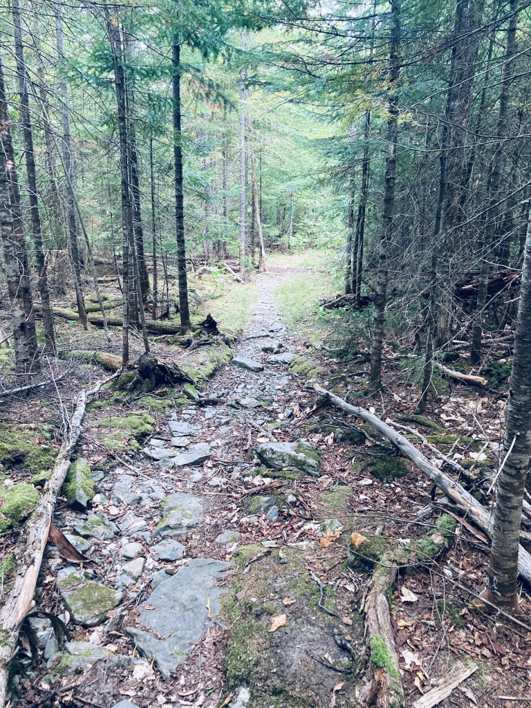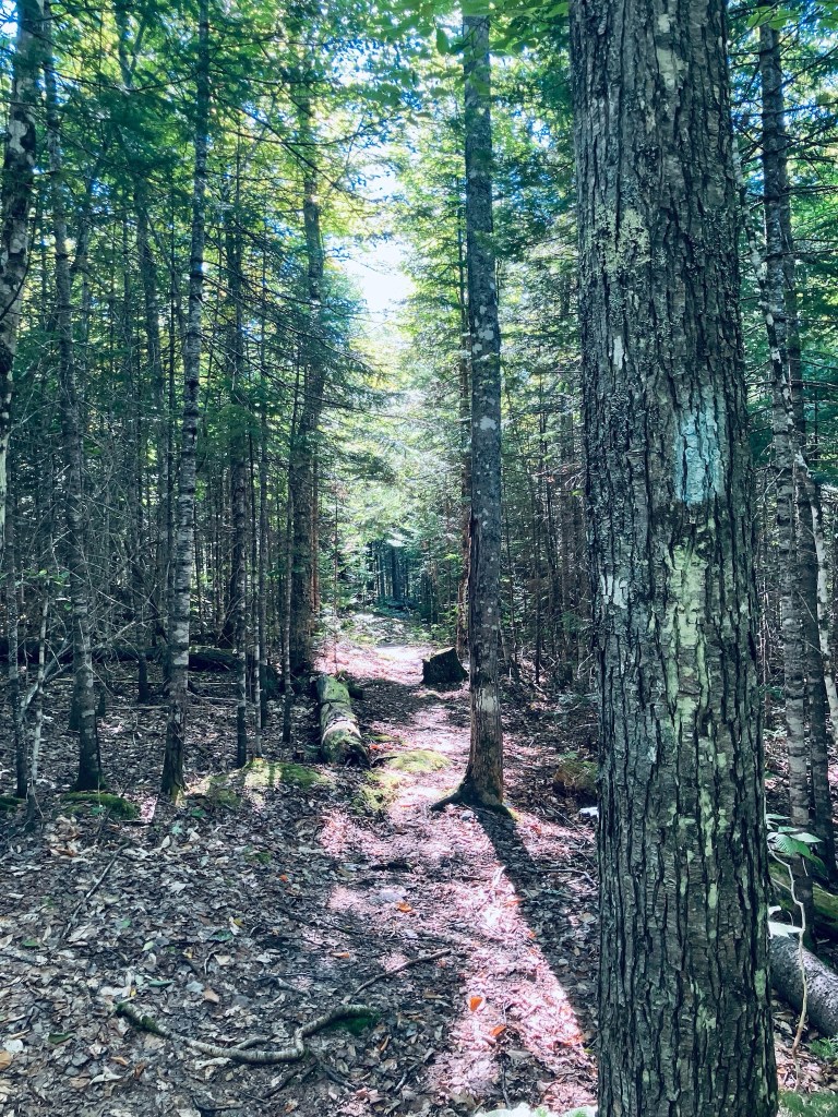 After the ponds, the trail climbs slightly, then settles into its slightly downhill green tunnel run back to the trailhead. I didn’t rent a canoe either time, but this long, flat walk would be a good opportunity during a longer Baxter State Park visit to rent a canoe to explore Billfish or Long Pond, and to make a full day of this beautiful hike.