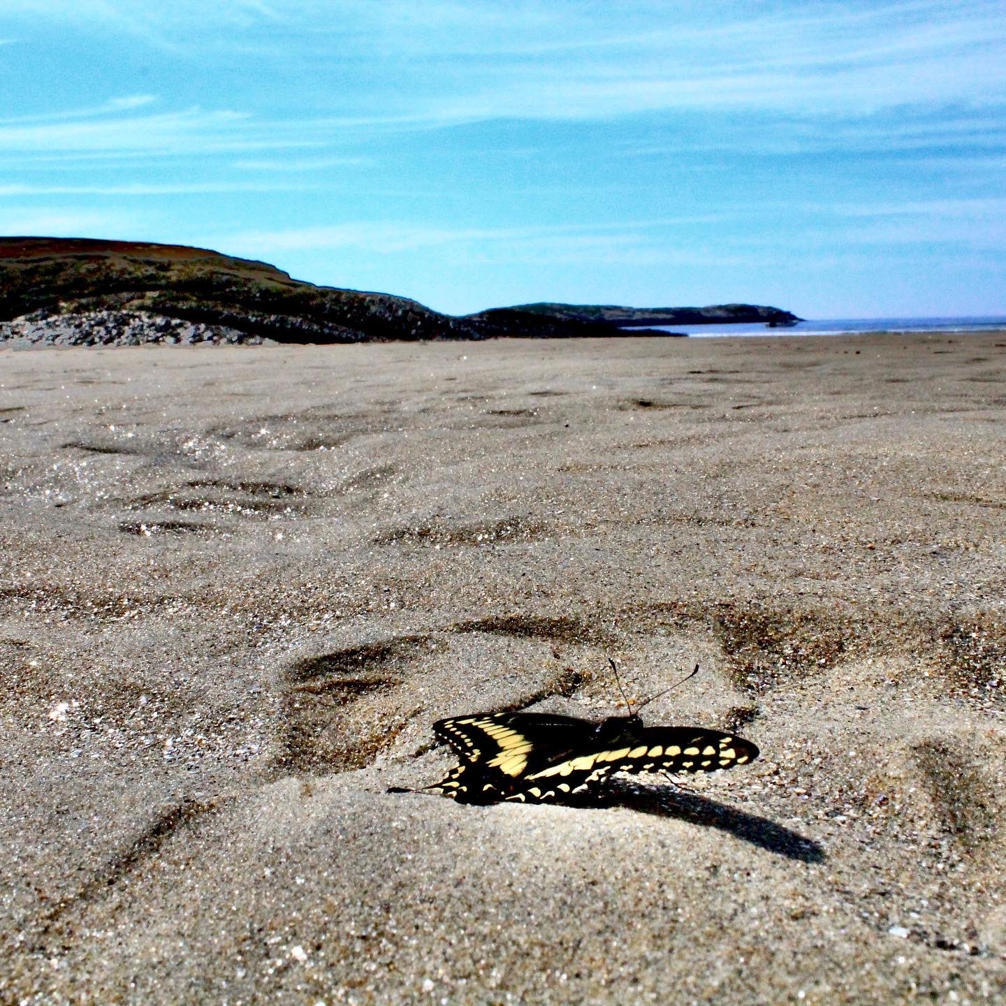 Swallowtail butterfly near end of life cycle, Seawall Beach, Phippsburg, Maine