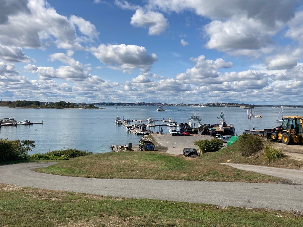 The Casco Bay Lines Terminal is located at 56 Commercial Street, Portland, Maine, and the ferry schedule is posted here. As of November 2025, round-trip tickets are $7.20 for adults (14 and over), $3.60 for kids/seniors/disabled, and free for children under 5. These typically double in peak season, mid-April to mid-October. Dogs can go on the ferry, they must be leashed, and their tickets are $4.50. You can bring bikes for a small fee, or rent them on-island (golf carts can also be rented, but that’s not hiking). The voyage from Portland to Peaks allows views of Fort Gorges, the harbor, seabirds, and occasional seals.