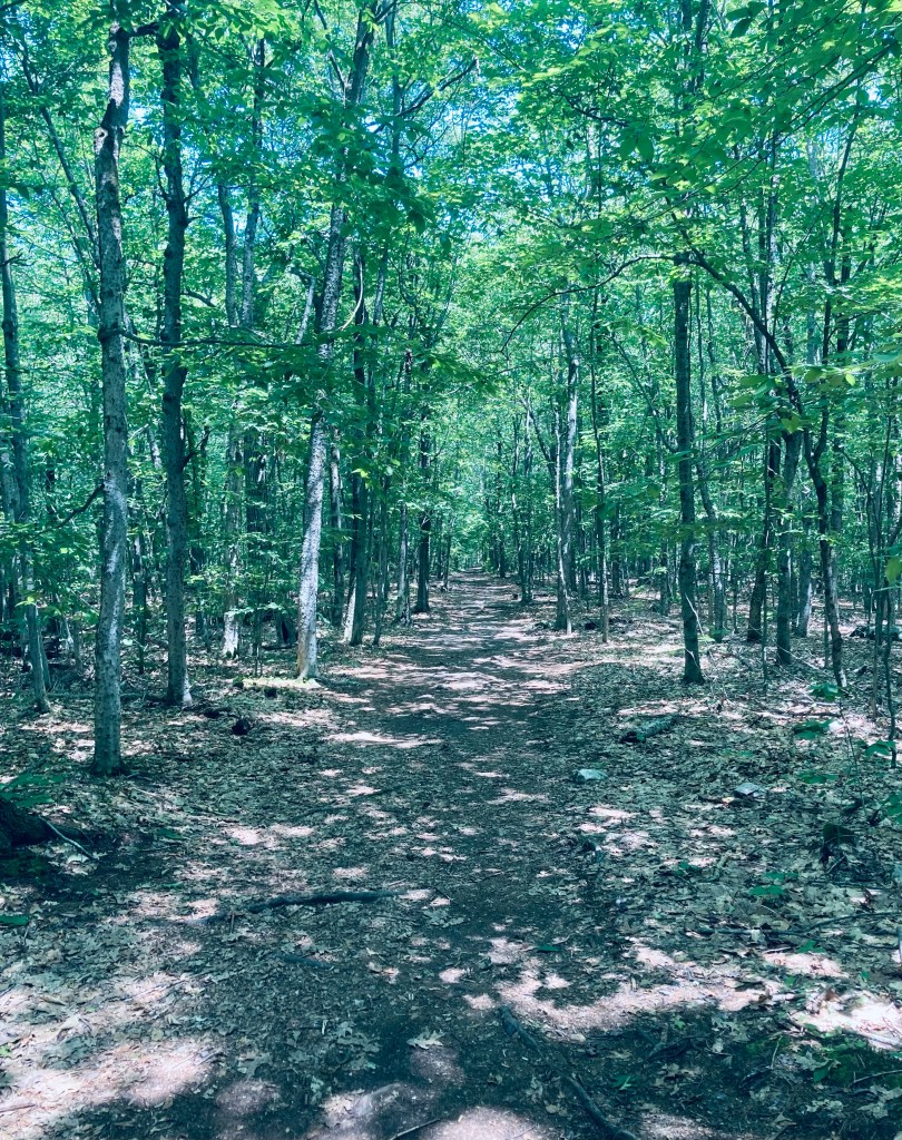 Vaughan Woods, surprisingly close to downtown Augusta and the capitol complex, is part of a 197-acre nature preserve adjacent to the historic Vaughan Homestead in Hallowell, Maine, free to the public and open from dawn to dusk. Dogs are allowed, on-leash. The Vaughan Woods website has trail maps, a historical walking guide, and a list of programs. The Woods, comprising 150 acres, are protected through a conservation easement held by the Kennebec Land Trust. Trailhead parking is available in a small roadside lot at the corner of Litchfield Road and Middle Street. If this is full, alternate parking is available (during non-school hours, weekends and holidays) at Hall-Dale High School at 97 Maple St. in Farmingdale, with trailhead access by the tennis courts. This trail, and our photo, was featured in Portland’s monthly magazine in July/August 2024’s “Micro Hikes” article (pg 55).