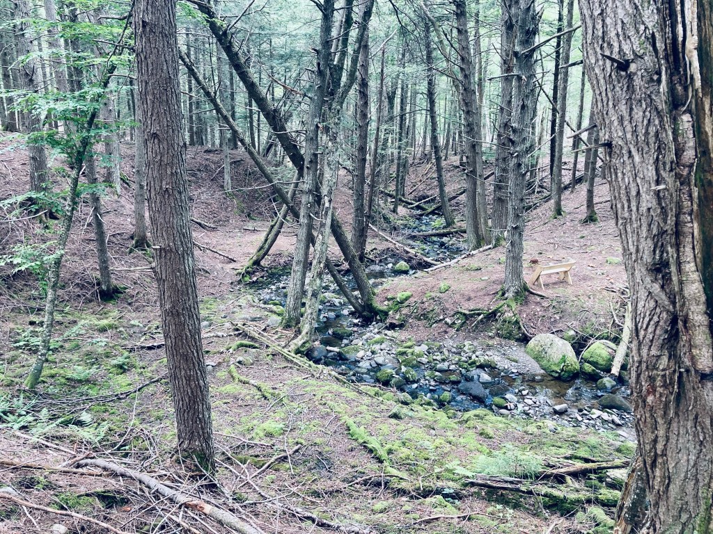 As I completed the circle, close to the Bates Homestead, the path hugged the edge of a gully with a small valley, typically containing a creek, but dry in some summer months, running through it. A large sign marked the historic Isaac Bates and Ursula Jones Homestead, now consisting of only sunken foundations, which was built prior to 1807. Not long after, I returned to the parking area.