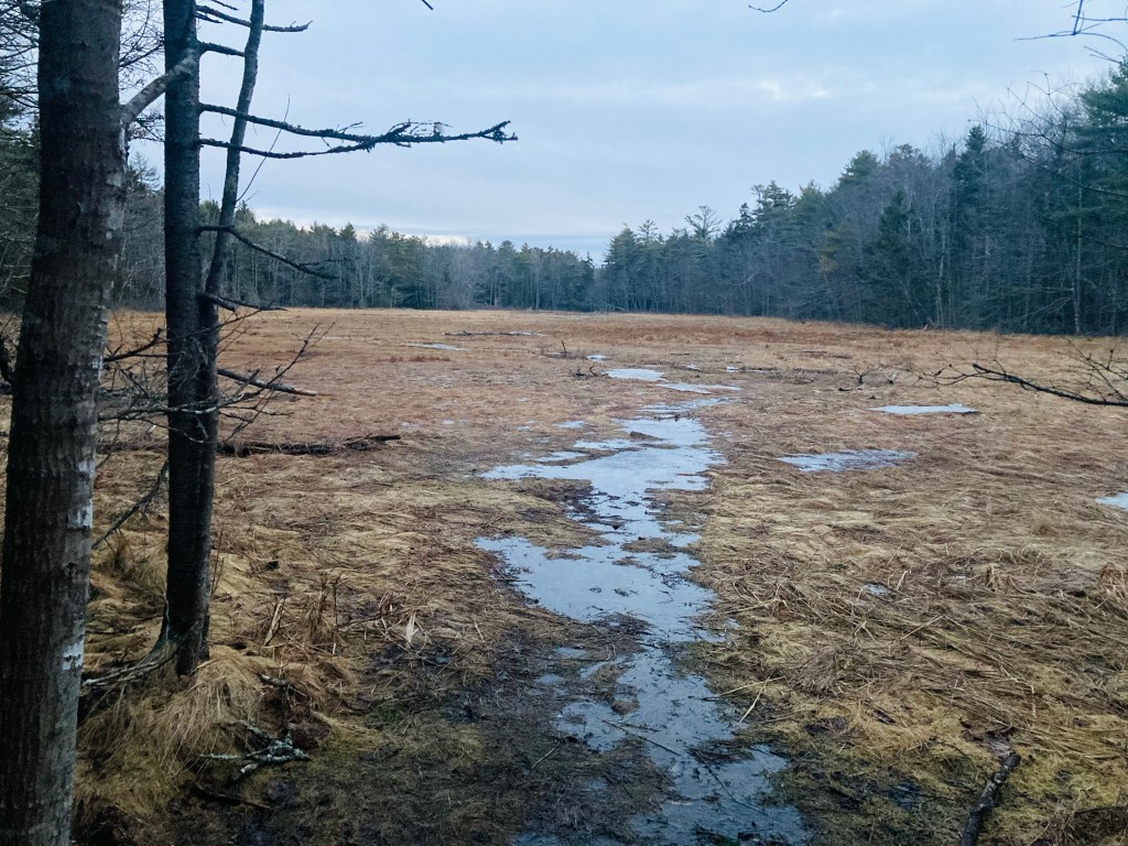 As we moved into the forest on the home stretch, I caught sight of a porcupine making its way out of the fields and across the trail. At our approach, it turned away from us, raising its tail toward us to telegraph its willingness to protect itself. The porcupine then lumbered through the pines, and made its way quickly up a tree, watching us from its perch as we walked back to the parking area. For food and drink after the hike, try Wild Oats Bakery and/or Flight Deck Brewing, which share a Brunswick Landing parking lot, on the way back to Route One.
