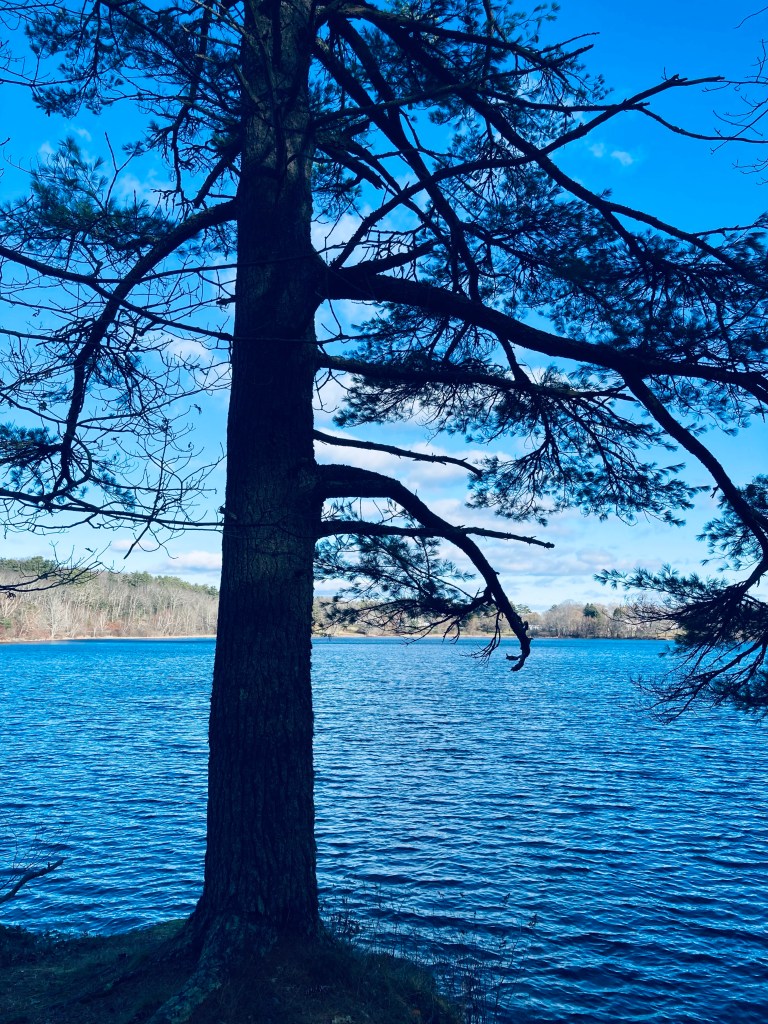 Cooley Preserve at Center Pond, also known as Center Pond Preserve, is located in Phippsburg and maintained by the Phippsburg Land Trust. Cooley Preserve, known for its bird habitat and wildflowers, contains 253 acres of woods, ledges, a beaver pond turned into a marsh, and the shoreline of Center Pond. A friend and I explored the trails on a cold but sunny late November day. The trailhead off Parker House Road is just south of a narrow neck between Center Pond and the Kennebec River, directly across the river from Squirrel Point light. The parking area has a sign-in notebook, with space for trail brochures (none when we visited), and a sign lists access to McKay Farm Preserve via the South Perimeter Trail. Online, the brochure notes that the Preserve is named for Mrs. Eleanor Cooley, from whom Phippsburg Land Trust acquired this, its first property, in 1995.